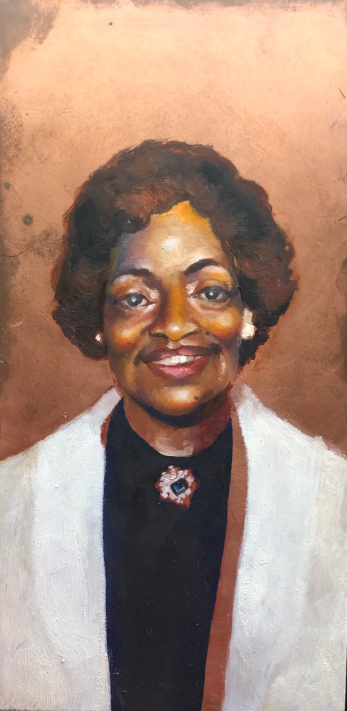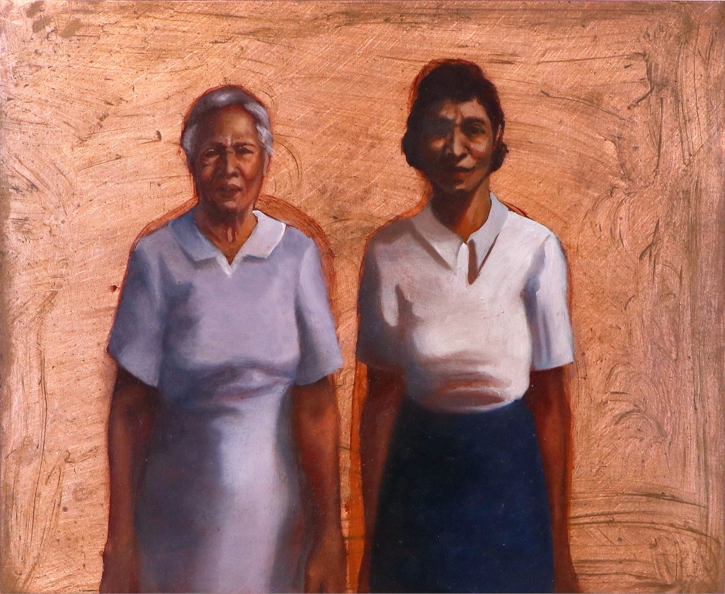 “Portraits of My Ancestors” depicts my family members both living and dead. The unvarnished copper surfaces will patina over time, slowly transforming the image and serving as a metaphor for the ephemerality of memory. The small scale of the portraits foster a sense of beauty and intimacy, conveying the perseverance of the subjects’ love from beyond their passing.